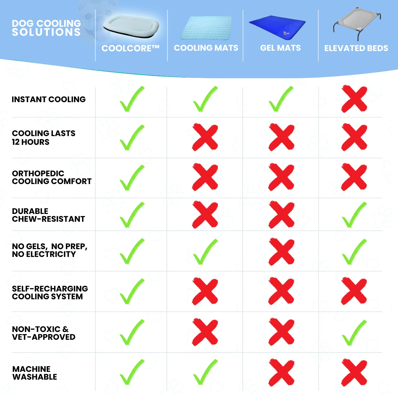 CoolCore™ delivers instant cooling comfort the moment your dog lies down — and it keeps them cool for up to 12 hours straight.